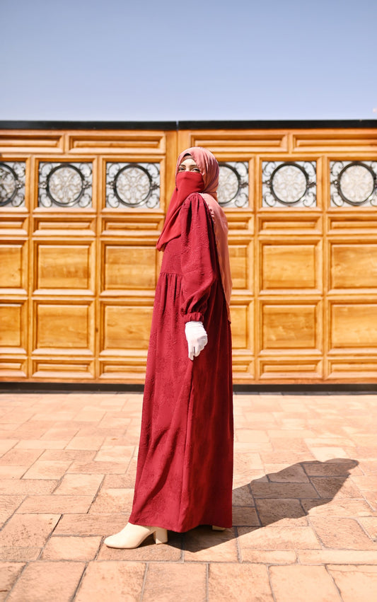 Lily Textured Maxi Dress - Maroon Red